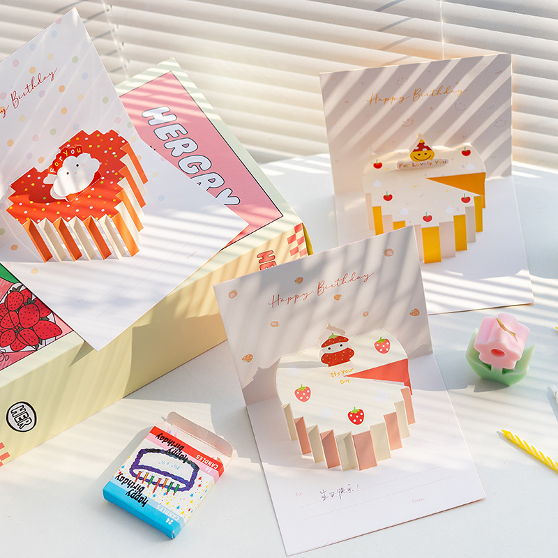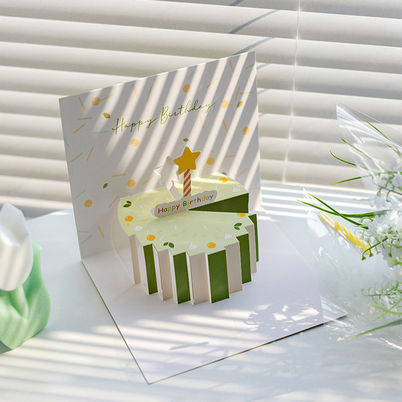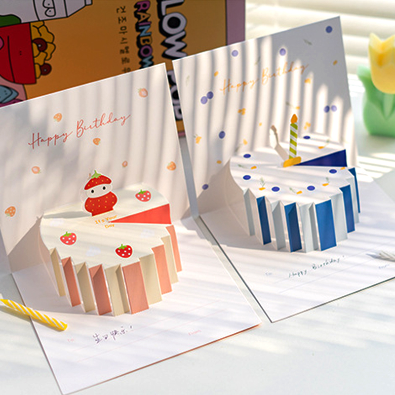 DESCRIPTION: This pop-up card is a unique and fun way to celebrate someone’s birthday! When you open the card, a 3D birthday cake pops up, complete with candles and decorations. The attention to detail is impressive, with intricate folds and cuts that create a lifelike and whimsical effect.